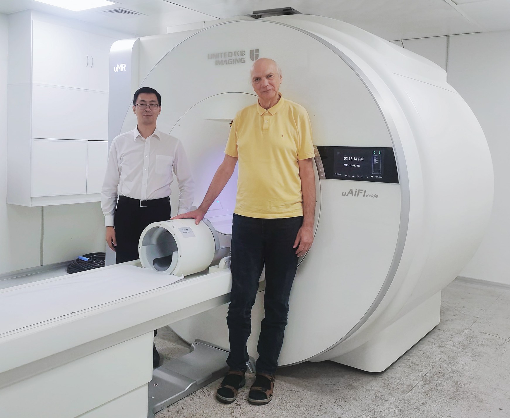 故事要从2016年说起,据磁共振事业部总裁李国斌回忆:彼时,前国际医学磁共振协会主席、磁共振技术泰斗,德国弗莱堡大学Jürgen Hennig教授来华交流,在与联影医疗的研讨会上,他聊起超高场在临床水土不服的见闻:“大设备必须放在5高斯线的专用房间,但非大型临床医院天然不具备条件”、“7T很遗憾只适用头部,不是神经专科医院它恐怕不是首选”。集结中国研究、工程磁共振大牛的现场,你一言我一语,一个空前的大创意随之迸发:在3T和7T间,是否有一片“处女地”,能既如3T一般适用全身且不占过大空间,又能打开全高场密钥,揭秘人体的未知奥秘?